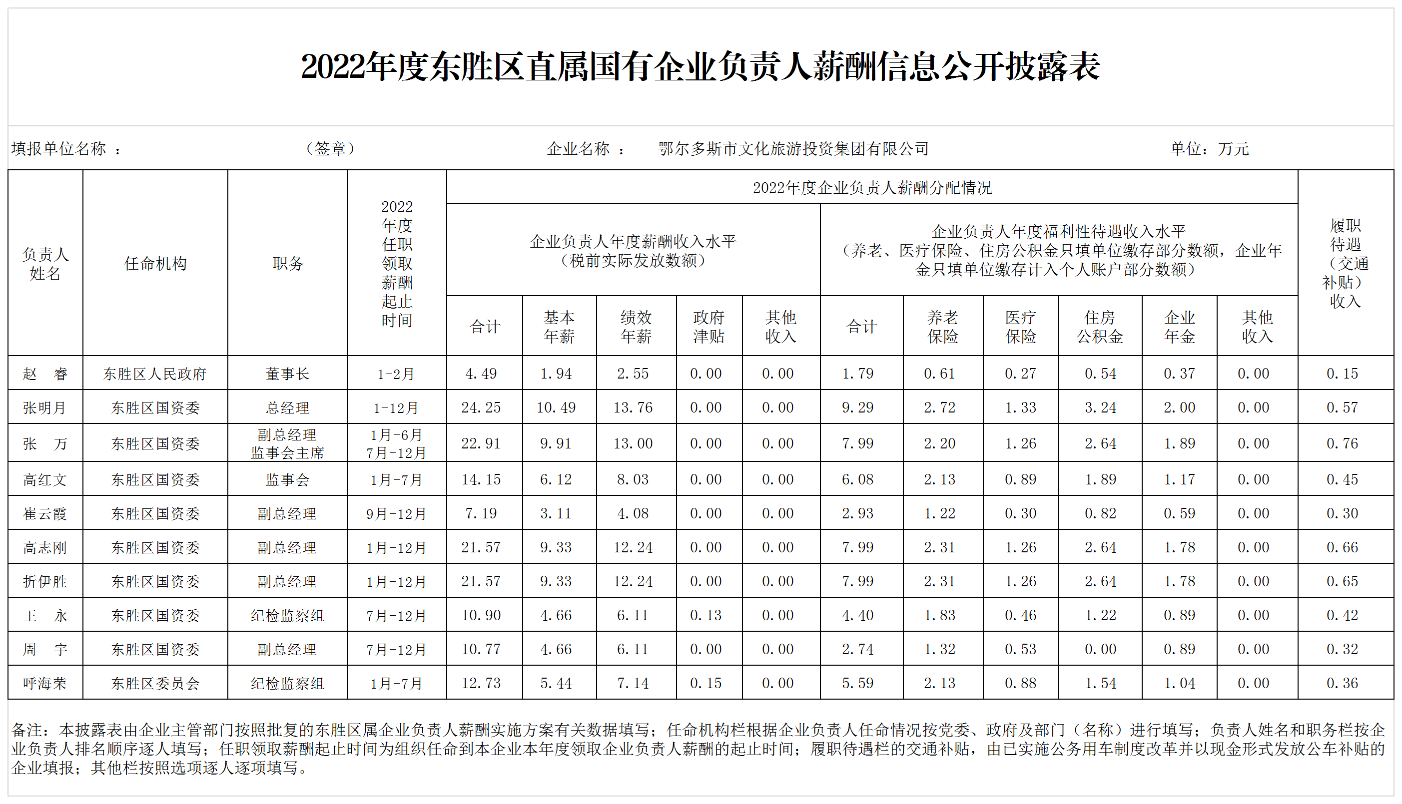 2022年度東勝區(qū)直屬國有企業(yè)負責人薪酬信息公開披露表